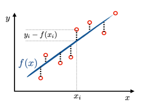 그림과 같이 붉은 색 점(학습을 위해 input한 데이터)들과의 거리가 가장 적은 직선을 구해야한다.