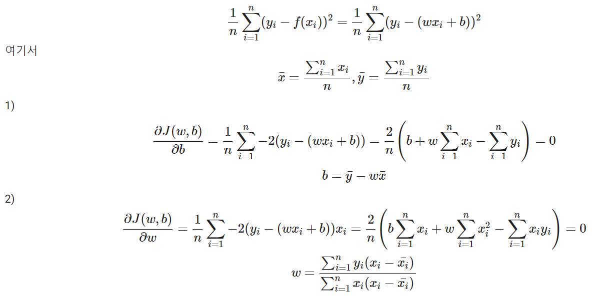 w와 b를 구하기 위한 공식으로 아래 공식과 같다.