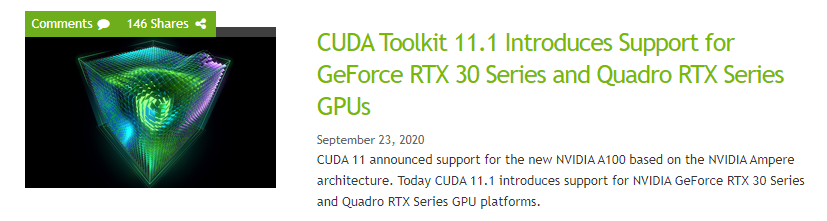 cuda와 가치 세트로 사용되기에 8.0.4를 지원하는 11.1 다운로드 - (선택사항) TensorRT 6.0 - 일부 모델에서 추론 처리량과 지연 시간을 향상합니다.